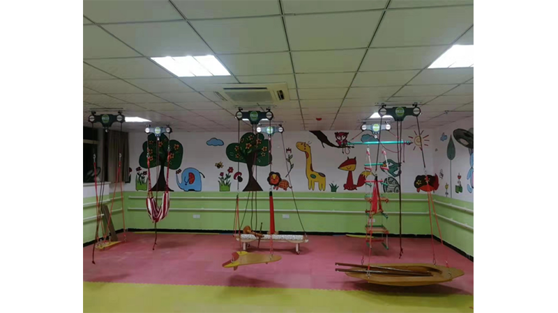 懸吊減重支持訓(xùn)練系統(tǒng)針對骨骼肌肉功能障礙疾患和神經(jīng)系統(tǒng)疾患的患者,通過單軌滑動(dòng)懸掛點(diǎn)下連接的相關(guān)配件(包括彈性繩、寬懸?guī)А⒄瓚規(guī)У龋?,給予患者不穩(wěn)定支撐面以及弱勢肌肉的減重支持,通過閉鏈運(yùn)動(dòng)來進(jìn)行整體功能評估和理療(訓(xùn)練),包括激發(fā)失活的深層肌肉或鍛煉失用的外周動(dòng)作肌肉,達(dá)到調(diào)整生物力學(xué)平衡整體運(yùn)動(dòng)鏈,進(jìn)而從本質(zhì)上緩解疼痛以及提高患的者運(yùn)動(dòng)功能。